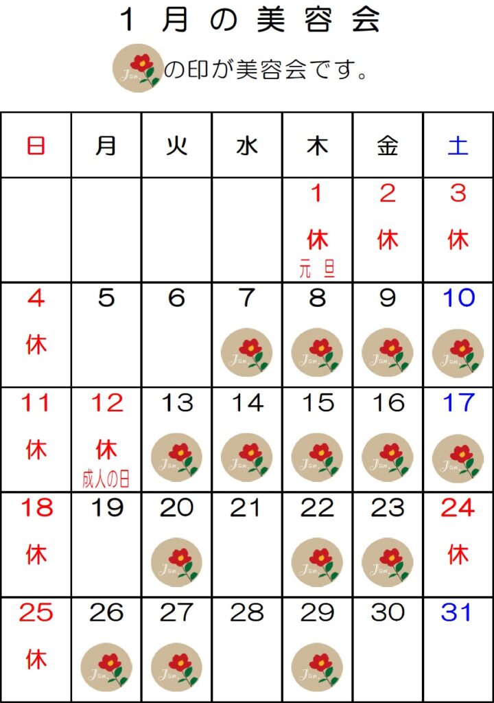 1月の美容会のご案内