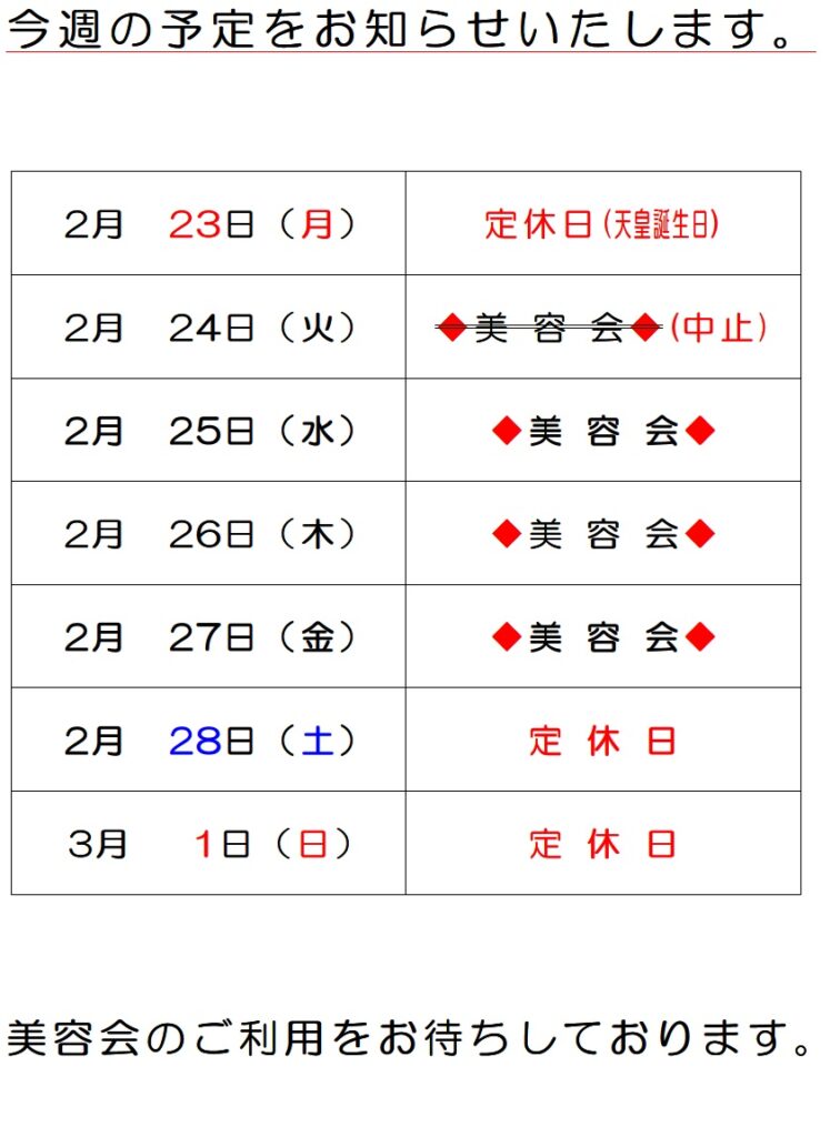 今週の予定