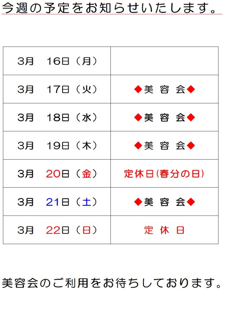今週の予定